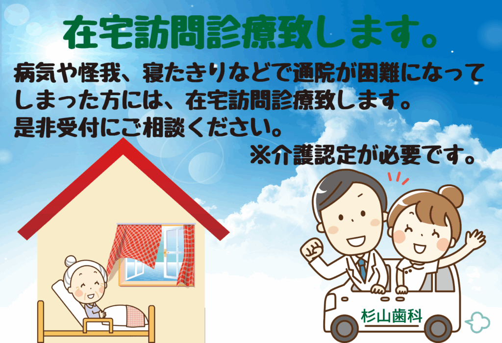 ご家族・ご親戚に通院できずに困っている方が居りましたら、是非受付にご相談ください。